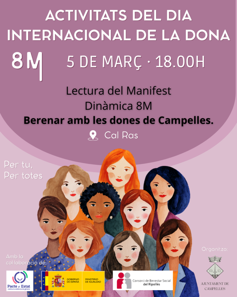 El proper 5 de març a les 18.00 h us convidem a participar en les activitats organitzades amb motiu del 8M.