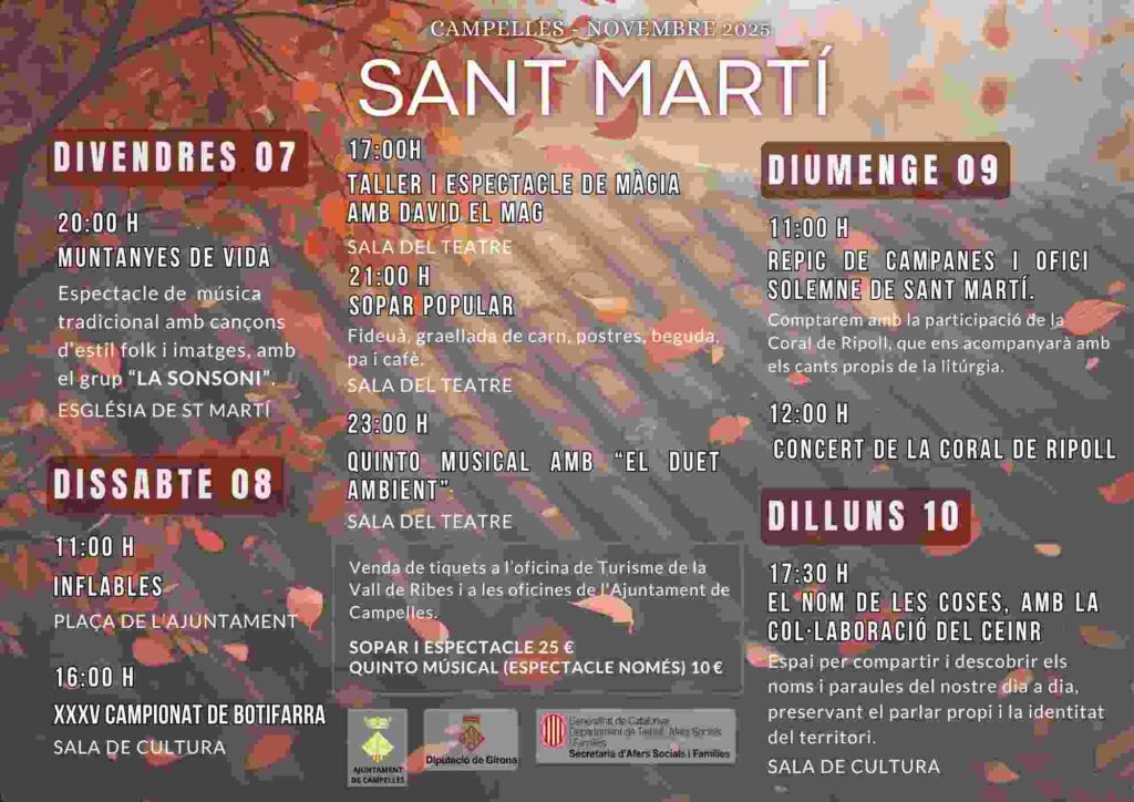 L’Ajuntament de Campelles us convida a gaudir d’un nou cap de setmana de Festa Major, ple d’activitats per a totes les edats i amb el caliu que sempre caracteritza el nostre poble.