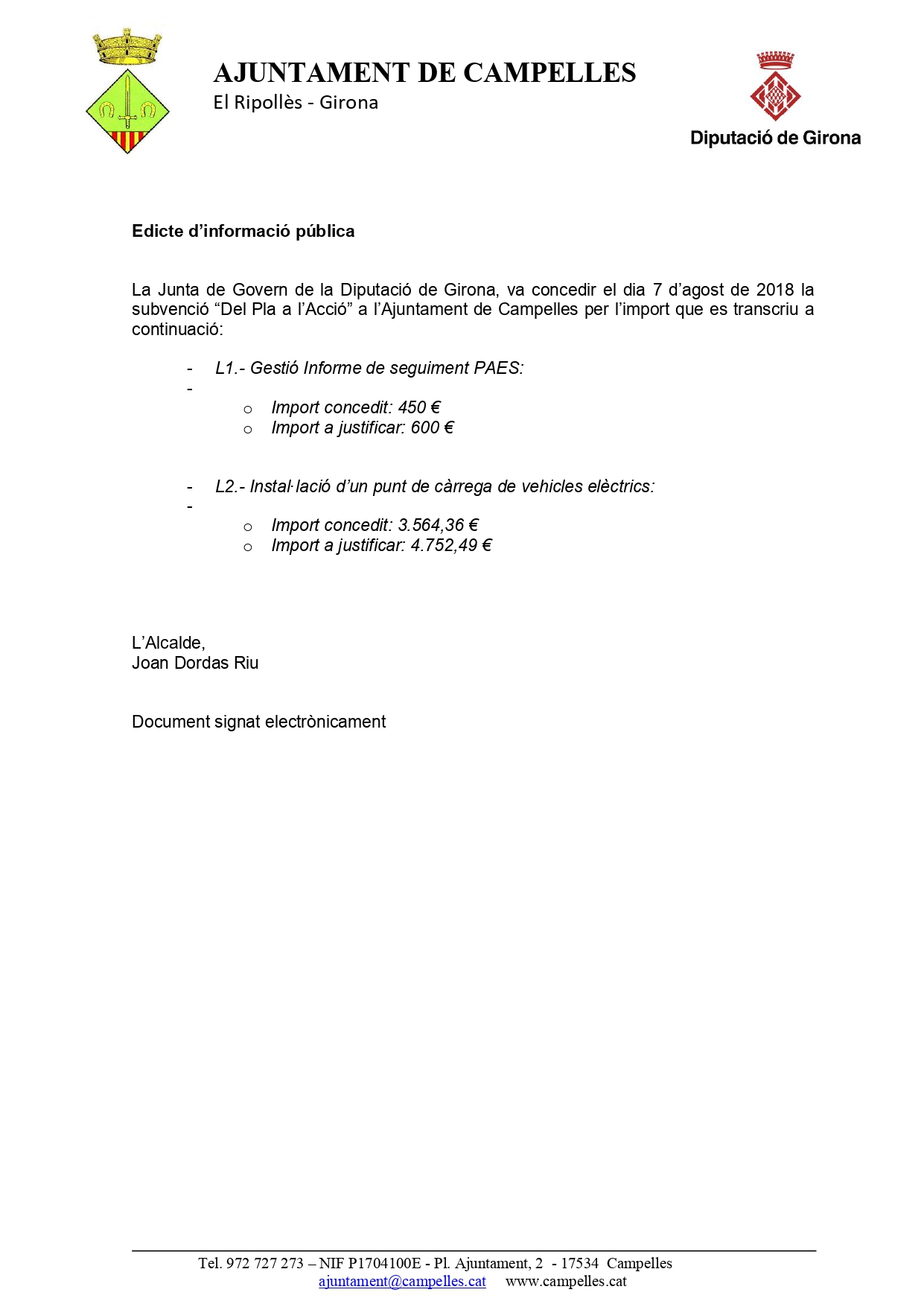 General, Notícies ANUNCI SUBVENCIÓ: LÍNIA 1 PAES 2018-2019 Podeu veure/descarregar l’anunci fent clic AQUÍ 27/12/2019